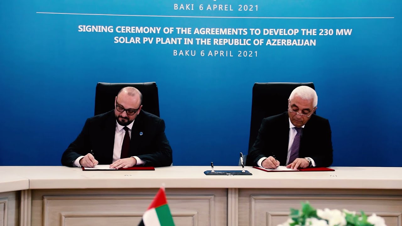 وخلال حفل رسمي أقيم في مكاتب وزارة الطاقة في العاصمة باكو، وقع معالي برويز شهبازوف، وزير الطاقة الأذربيجاني، ومحمد جميل الرمحي، الرئيس التنفيذي لشركة "#مصدر" على اتفاقية استثمار المشروع، كما وقع الرمحي وبابا رزاييف، رئيس شركة "أذرينرجي أوه جيه أس سي" على اتفاقيتي شراء الطاقة وتوصيل ونقل الكهرباء.